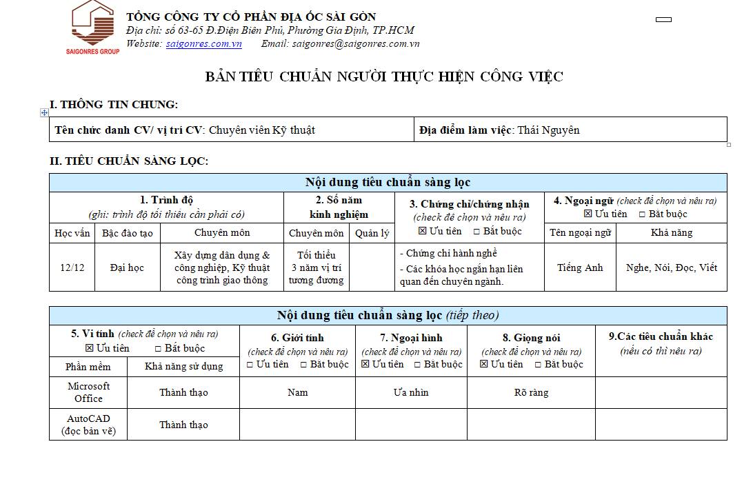 TỔNG CÔNG TY CỔ PHẦN ĐỊA ỐC SÀI GÒN- VĂN PHÒNG THÁI NGUYÊN TUYỂN DỤNG